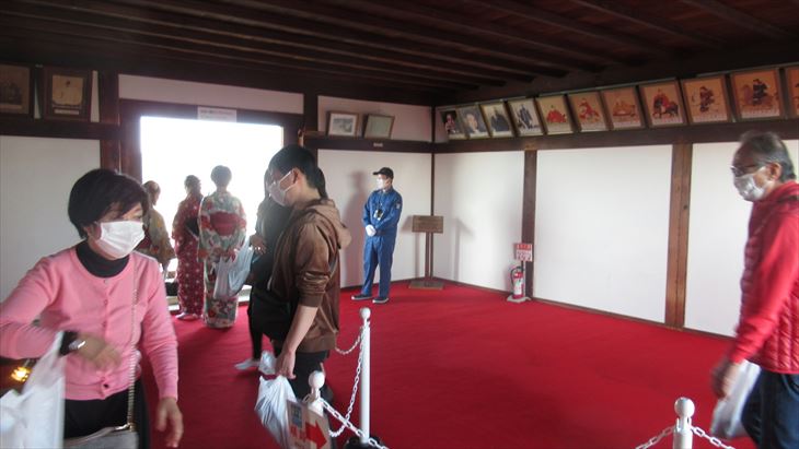 おなじみの検温後に入場。展示物はほとんどなく、歴史感のある建物内部を見学し天守閣へ、天守閣の周りを一周するのが順路になってましたが、低い柵しかなかったのでとても怖かったです。犬山城下町の古い町並みは車で確認しました。