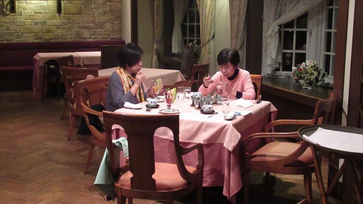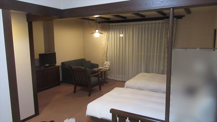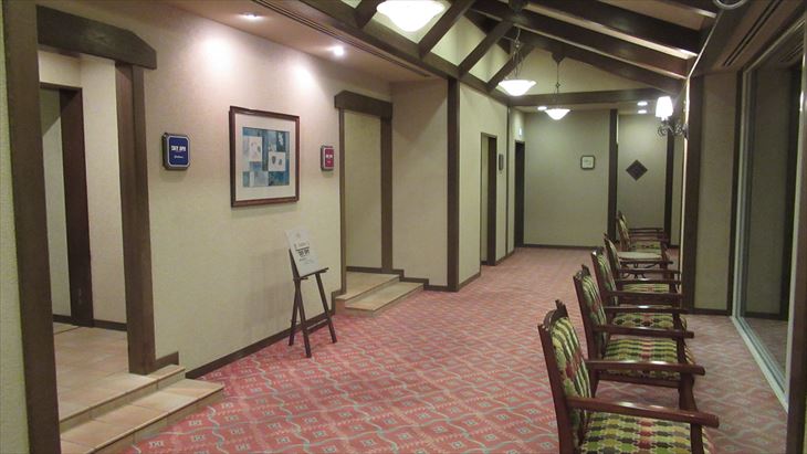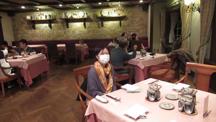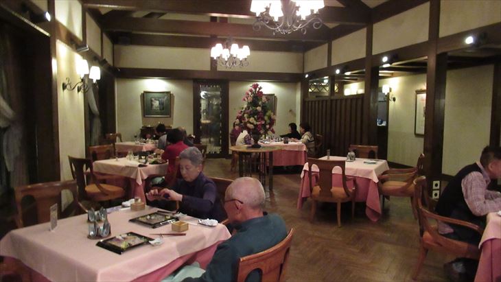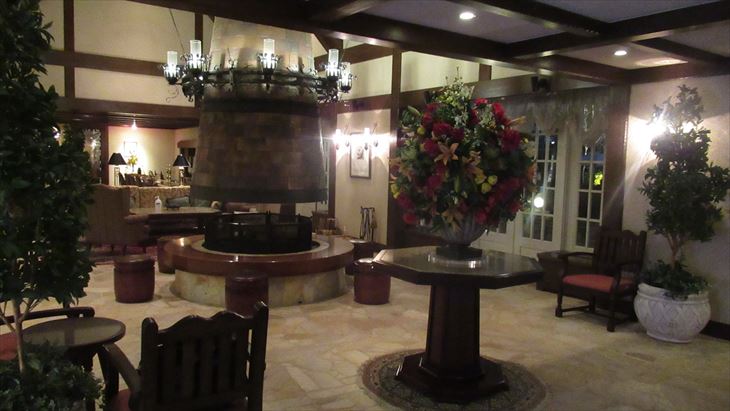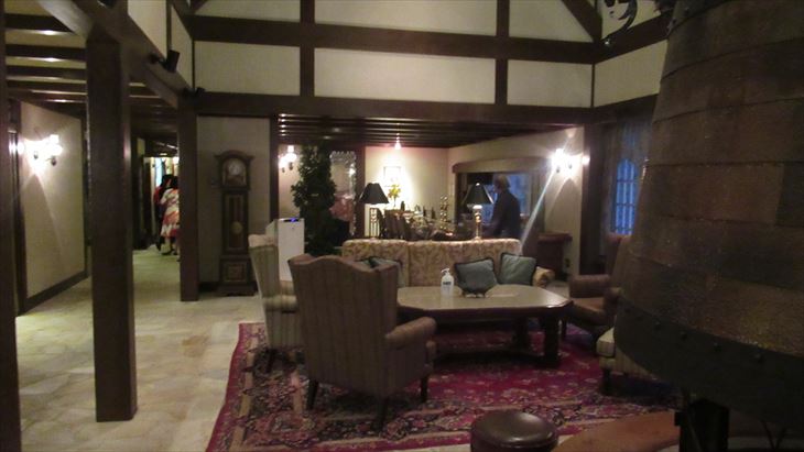 犬山城から本日の宿「サンメンバーひるがの」までの距離は約100km,山道なので高速で行くことに、途中お土産を買うために長良川SAに立ち寄り目的地に到着したのは17時20分、暗くなる少し前。ロービーに入ると山小屋風の雰囲気、従業員はチロルの民族衣装、これまでのXIVイメージと全く違い、とってもいい感じ。