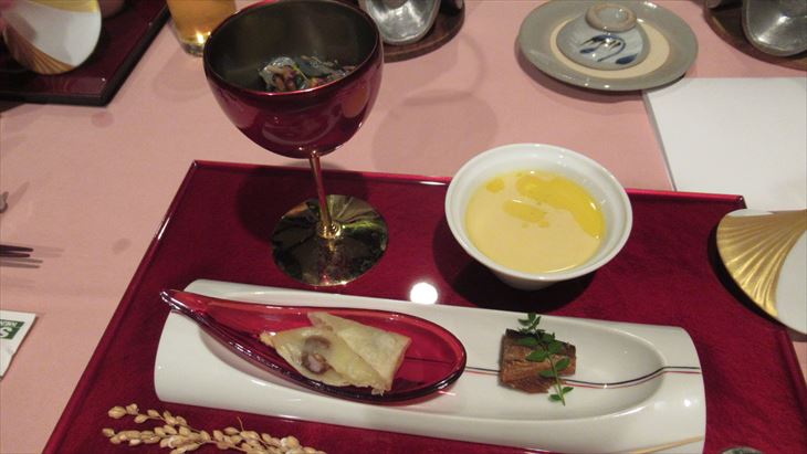 18時からの食事を30分延長してもらい、お風呂にはいって夕食会場へ。