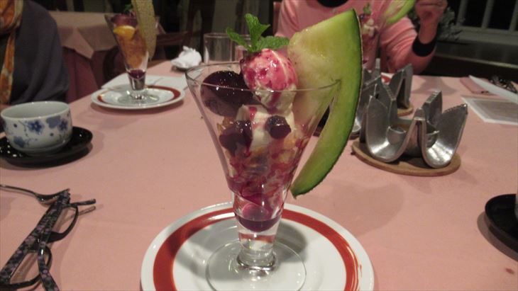 赤ワインボトルを注文、お肉が美味しくお替りが同じ量で1000円とリーズナブルなので全員追加、飛騨牛を堪能しました。デザートはパフェと斬新。とても楽しい夕食でした。