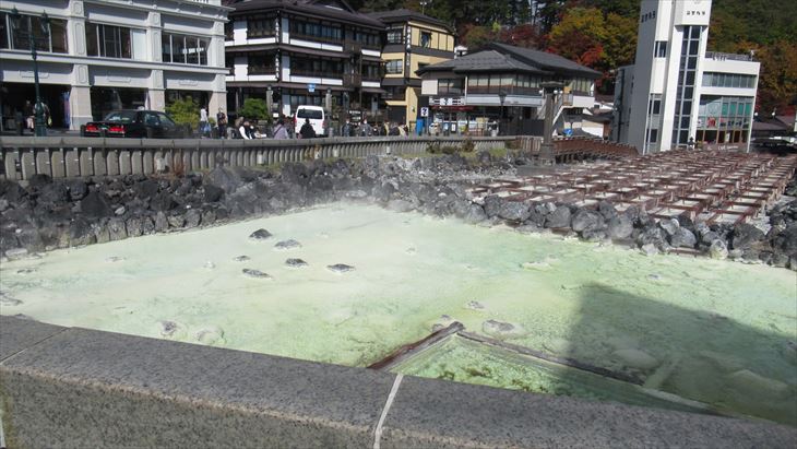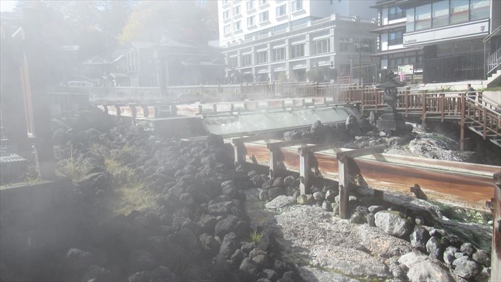草津温泉の熱乃湯で10:30開催される「湯もみ」見学を目標にしてましたが、途中寄り道をしたので到着したのは11:00、残念。湯畑をゆっくり一周して草津温泉の雰囲気を味わいました。平日なのにここも観光客がいます。