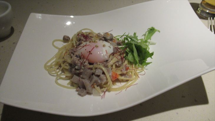 20時からの夕食、この時間でも本当に満席、何故か窓側のいい席に案内されました。カジュアルコースですが、パスタ・お魚・お肉料理があってお腹一杯です。