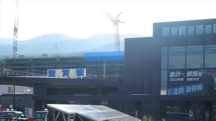 敦賀の朝は晴れ。ホテルの部屋から見える新幹線工事中のこの写真が好きです。