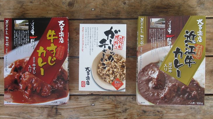 昨日は時間なく道の駅に寄れなかったので、本日は最初に遭遇した道の駅「安曇川(あどがわ)」に立ち寄りました。琵琶湖なので佃煮しかないかと思って見学してたら、律子さんの好きそうなカレーとガーリックライスがあったのでゲット・・・・