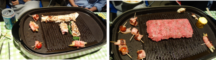 最初に牛肉を焼きます。次はお肉の巻物、ひき肉のそのまま焼きとお肉は3種類の方法で頂きました。