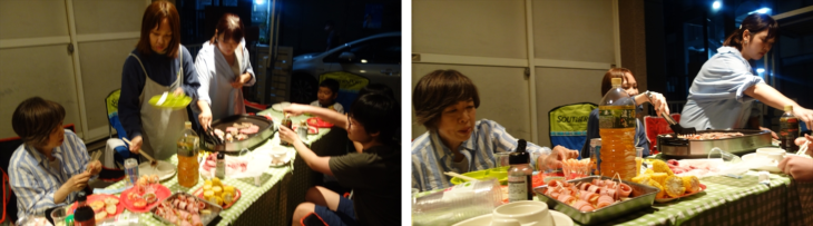 19時にBBQスタート。子供達はお腹空いていたようでトウモロコシから始まり、パン、お肉とお腹が落ち着くまで着座して食べています。
