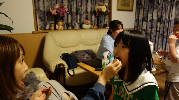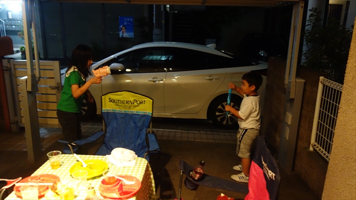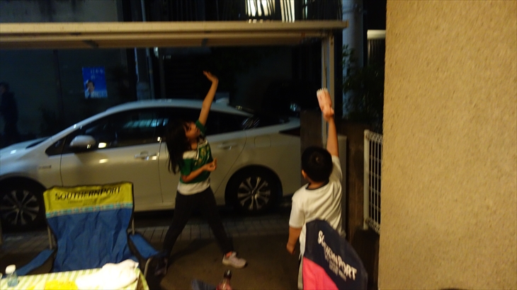 19時にBBQスタート。子供達はお腹空いていたようでトウモロコシから始まり、パン、お肉とお腹が落ち着くまで着座して食べています。