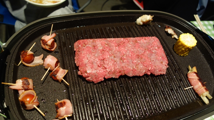 最初に牛肉を焼きます。次はお肉の巻物、ひき肉のそのまま焼きとお肉は3種類の方法で頂きました。