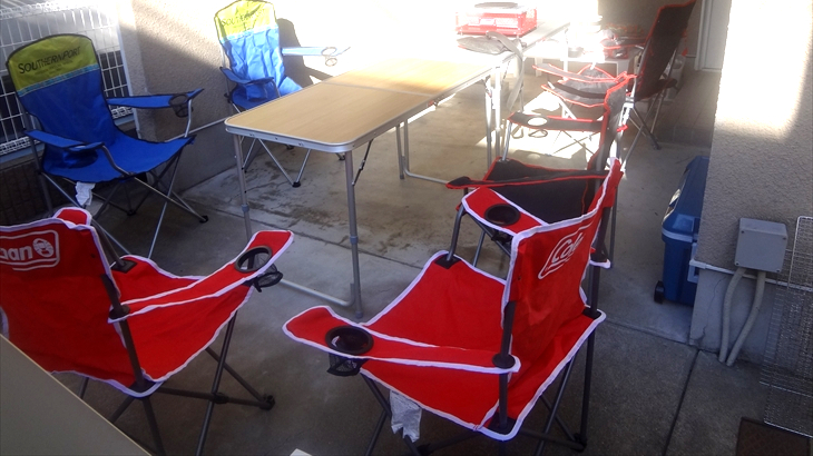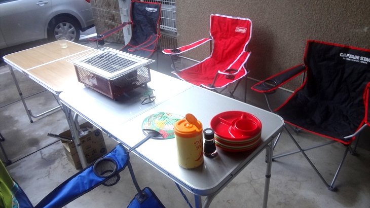 食材は近所のスーバにお昼ころ買出しに行き、2時ころから準備開始。ガーデンBBQは3回目なので役割分担と準備手順はなんとなく暗黙の了解。私はせっせと会場設営に取りかかり3時ころには完了。