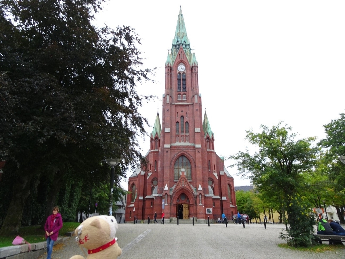 セントジョーンズ教会は緑の突き刺すようにとんがった屋根と赤色で塗られ壁、装飾の少ないことが特徴。大きな通りの最終地点、ベルゲンの町を見守るように建つ教会は、近くで見ると予想以上の大きさに圧倒します。入場料:無料