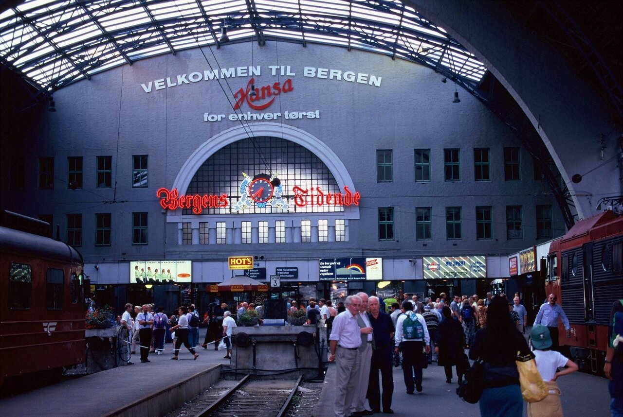 ノルウェー第2の都市の代表駅で終端駅。世界遺産とフィヨルド観光の拠点の街にある駅。駅自体は小ぶりですが伝統的な巨大ドームに覆われたホームとなっています。シグナチュール(1日数往復)は在来線改良路線を走る列車のため、駅も在来線と共用です。駅舎は石造りで、駅舎脇にあるバスターミナルへの連絡通路部分はガラス張りの近代的なものとなています。駅舎内には、コンビニ、軽食施設もあります。