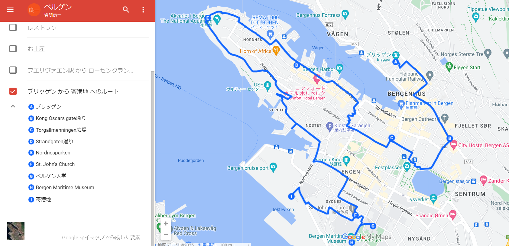 ベルゲンカードとレンタル自転車を利用したベルゲン1日観光プランを作成してみます。朝6時に入港するので7時30分ころ出発できますが、博物館やフィッシュマーケットの開館時間は10時なので最初は7時30分から始まるケーブルカーから始めましょうかね。