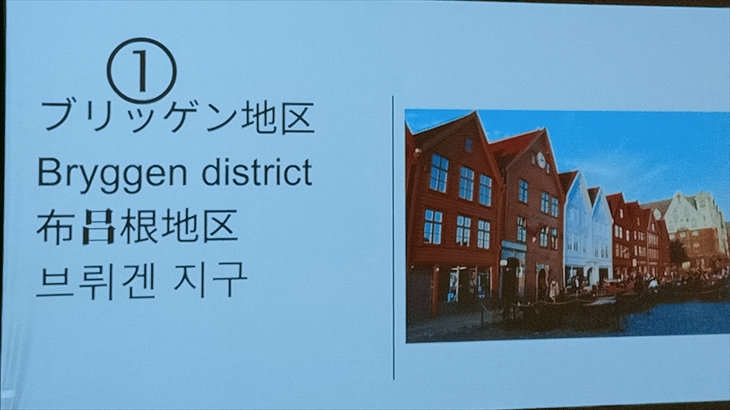 ベルゲン港の東側にあるブリッゲン地区は、ベルゲンで一番人気のある観光地。その美しい街並みは1979年に世界文化遺産に登録されています。14世紀にハンザ同盟のドイツ商人たちがやってきてドイツ街を作った場所です。ブリッゲンとは倉庫という意味があり、ハンザ同盟のオフィスや倉庫だった場所なんです。