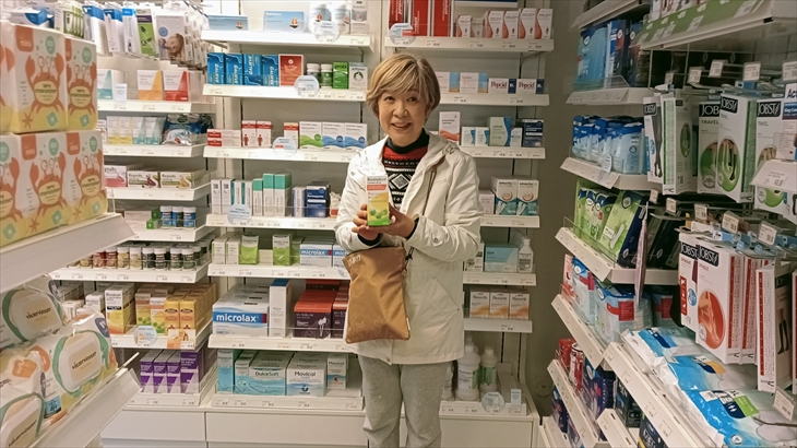 ブリッケン地区を裏道から散策しながら、ケーブルカー駅の手前にある薬局に立寄り、咳止めの薬をポケトークを駆使して購入しました。3612円。