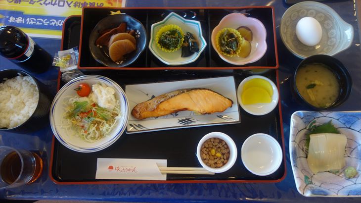 朝7時に食堂会場へ。会場に準備されている食事は3組、宿泊者は3名だったのでしょうか?朝食はおかずの種類も多く、温めて出してくれたり、イカ刺しがあったり、素晴らしかった。