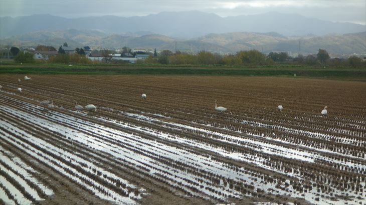 11時ころ美唄に到着しました。最初の観光地は渡り鳥(マガン)で有名な宮島沼です。9月末ころロシアから越冬のため4000kmの旅をして宮島沼で羽休め、10月末ころまでに東北に向かい飛び立つそうです。小屋のビデオで学習。
