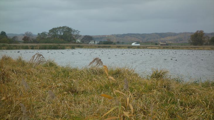 観察小屋のデータによると10月初旬に4万羽いたマガンが本日は3000羽くらいでもうほとんどが飛び立った後、でも宮島沼で本物を見れて良かった・・・
