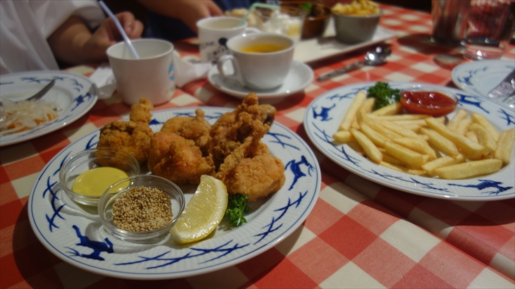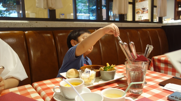 最初に利太朗くんのお子様ランチを注文しました。まだ大人の飲み物を注文する前に豪華なお子様ランチが到着、デザートに刺さっていた旗がお気に入りのようです。