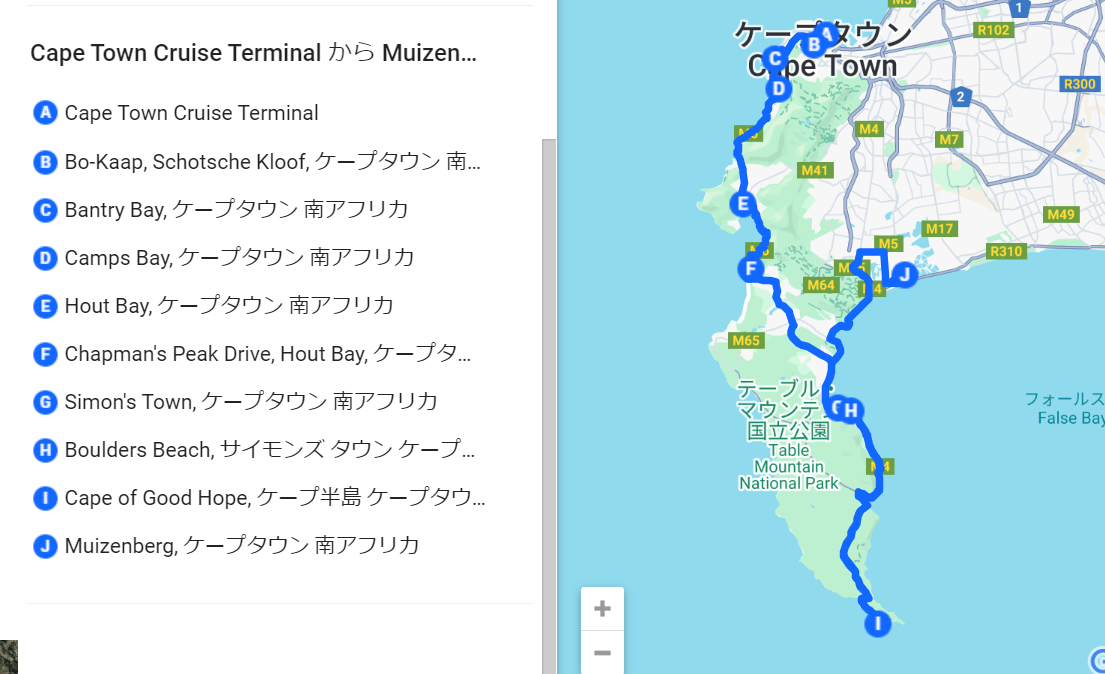 オプショナルツアーで喜望峰を見学し、V&Vウオーターフロントで買い物とワイン飲みながら食事です。南アフリカは食事が美味しいと聞いているので楽しみです。