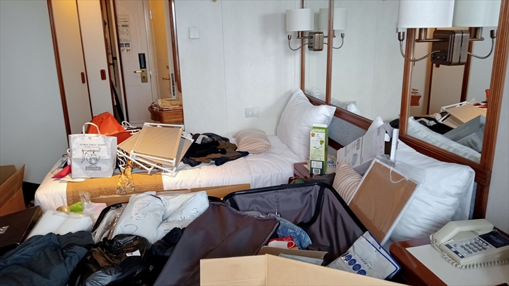 荷ほどきを行い荷物の整理をはじめました。でも不思議なことに一番小さなスーツケースが無くなっています。そのスーツケースに入れた荷物はあるのに・・・