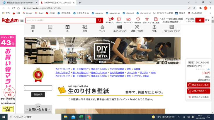 昨日注文したクロスは3月29日、フローリング材は3月31日に納品との回答。そのため、作業に必要になるクロス道具とフローリング接着剤を注文しました。