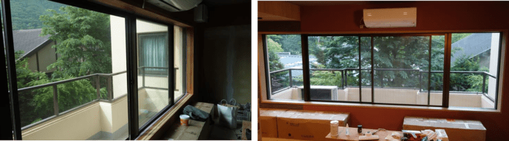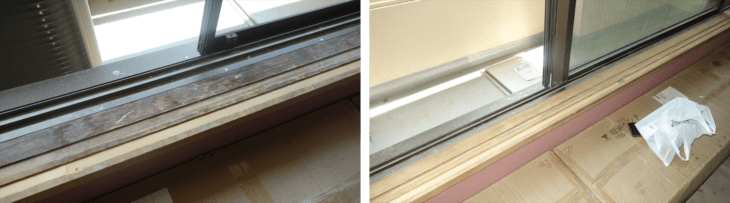 そして今回の方法、既存の窓枠の敷居と鴨居の溝を埋めパテ作業後にリメイクシートの貼付け、大成功でした。