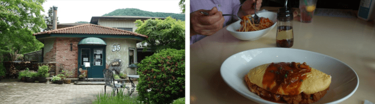 湿生花園内にある人気のレストラン「35」に行きました。以外に空いていてお客様は我々を含めて2組、前菜と飲み物が付くランチ(私はオムライス、律子さんはスパゲティ)、普通でした。