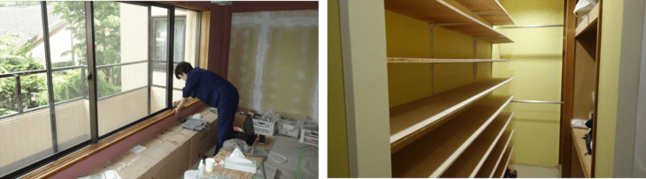 ・3重カーテン方式で窓枠に板を張り付け塗装→貼り付けた板の出来栄えに疑問