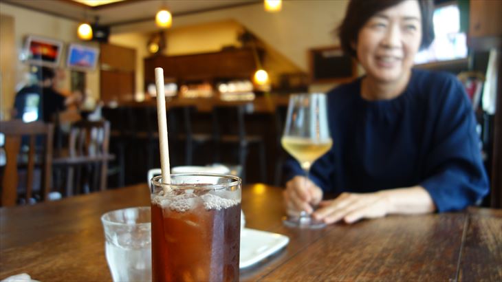 私はおすすめのワンプレートランチ、律子さんは白ワイン片手にハンバーグ定食。それなりに美味しかったです。