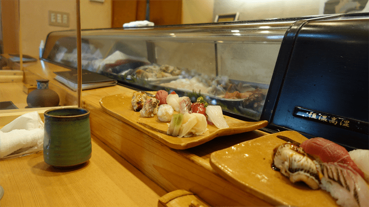 朝お風呂に入り、少し作業片付けを行い、出発前の11時30分頃また温泉。ランチは宮城野で有名、芸能人も訪れるお寿司屋さん「やまひこ」で握り8貫ランチを堪能しました。