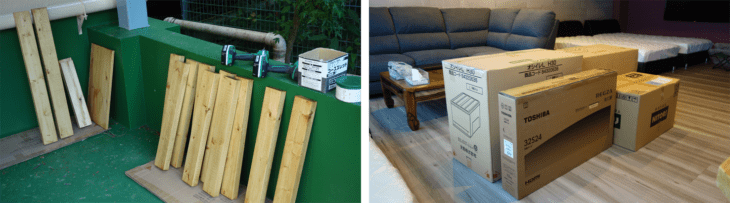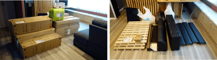 14時ころベット到着。開梱・組立・段ボール等のゴミ廃却などの作業完了は17時ころ。
