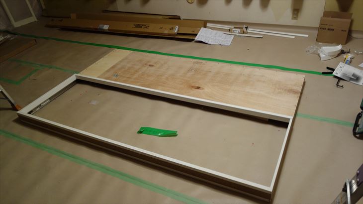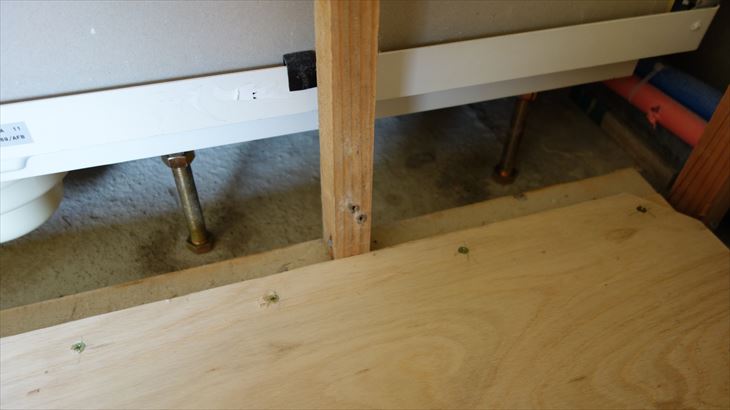 洗面所引き戸の設置検討、不足部品を買い出し、洗面所の床設置ができるように下地作業を行いました。明日は床材料を調達し、床完成を目指します。