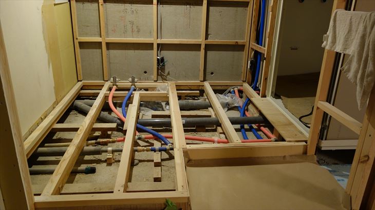 3月4日(金):洗面所床の仮置き