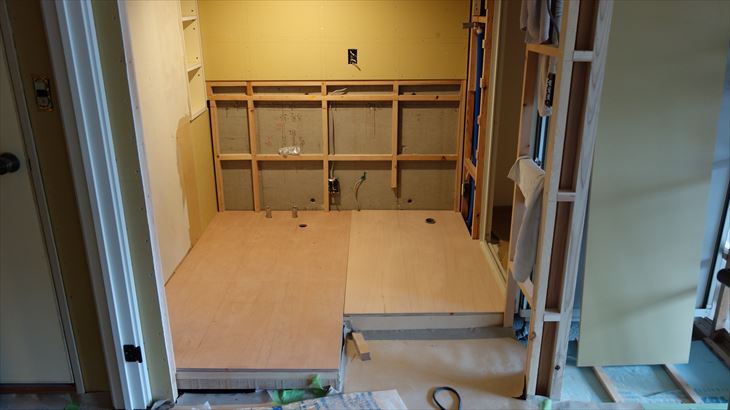 洗面所床の仮置き
