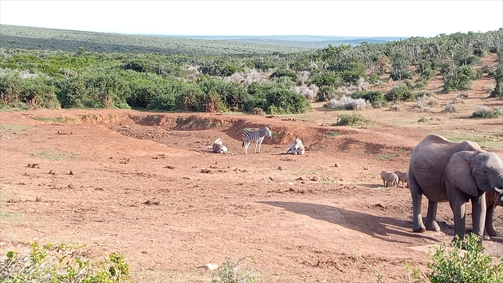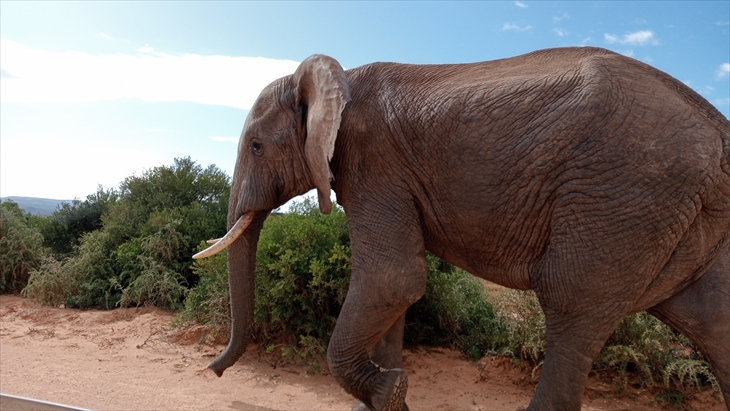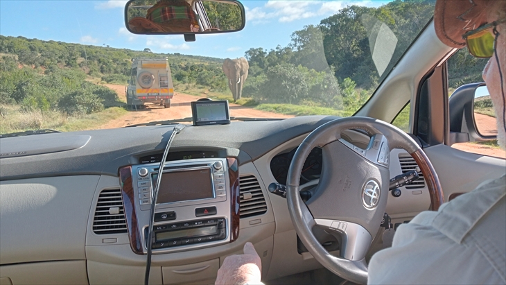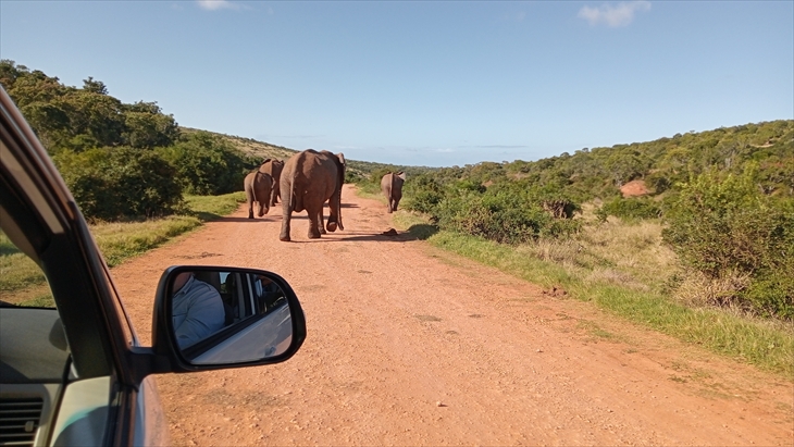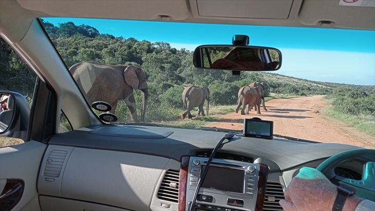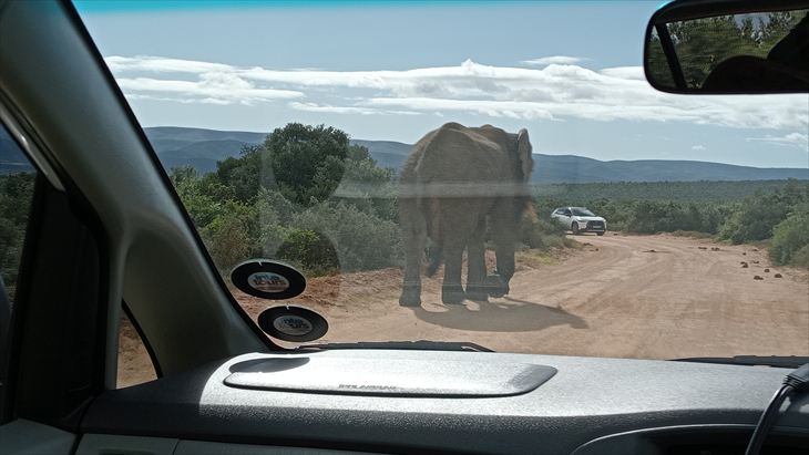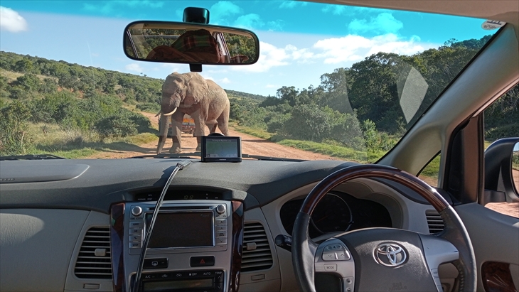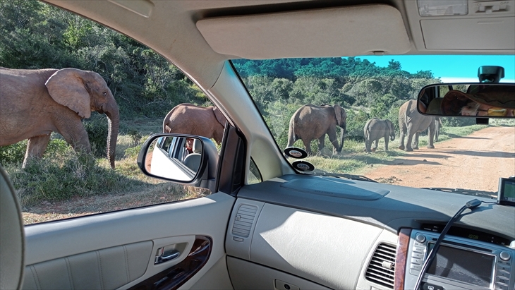 南アフリカで3番目に大きい多様な野生生物保護公園の「Addo Elephant National Park」を訪れます。9時17分に到着しました。以外に近いのですね。