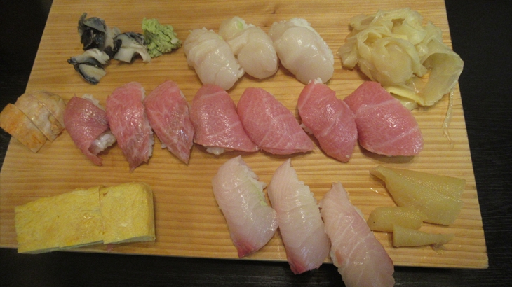 通常の3000円コースは11貫ですが今日は19貫、お寿司だけでいつもの1.7倍のボリューム、ローストビーフなども含めると2倍のボリュームなので最後はお土産に折り詰めしてもらいました。