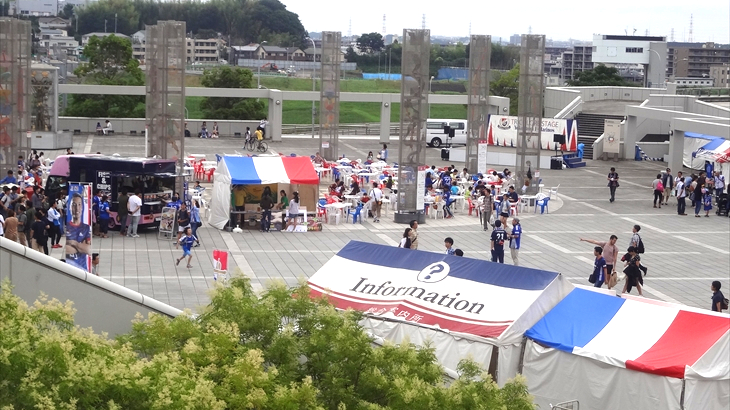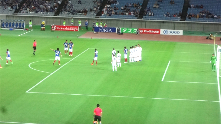 マリノスサポータ席はほぼ満員、反対のアウエイ側(ヴィッセル神戸 )のサポータは約3割程度、正面のスタンド席はガラガラですが、特別室(テラスボックス)側のスタンド席はホームなのでほぼ満員。サポータとの一体感を味わうためにホーム側が人気なのは理解できました。