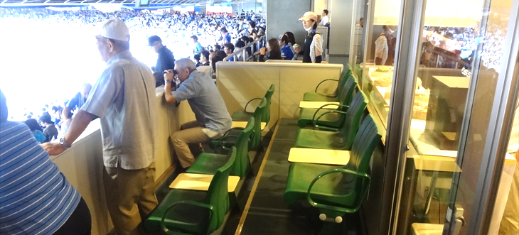 特別室(テラスボックス)でゆっくり優雅に観戦。サポータと一緒になって汗だくになり観戦。少し羨ましく思えました・・・・