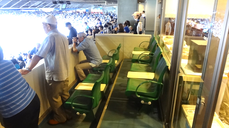 テレビはオンエア放送ではないですが、試合の様子を放映しています。ただ特別室(テラスボックス)から試合の経過時間が分からないのは難点でした。