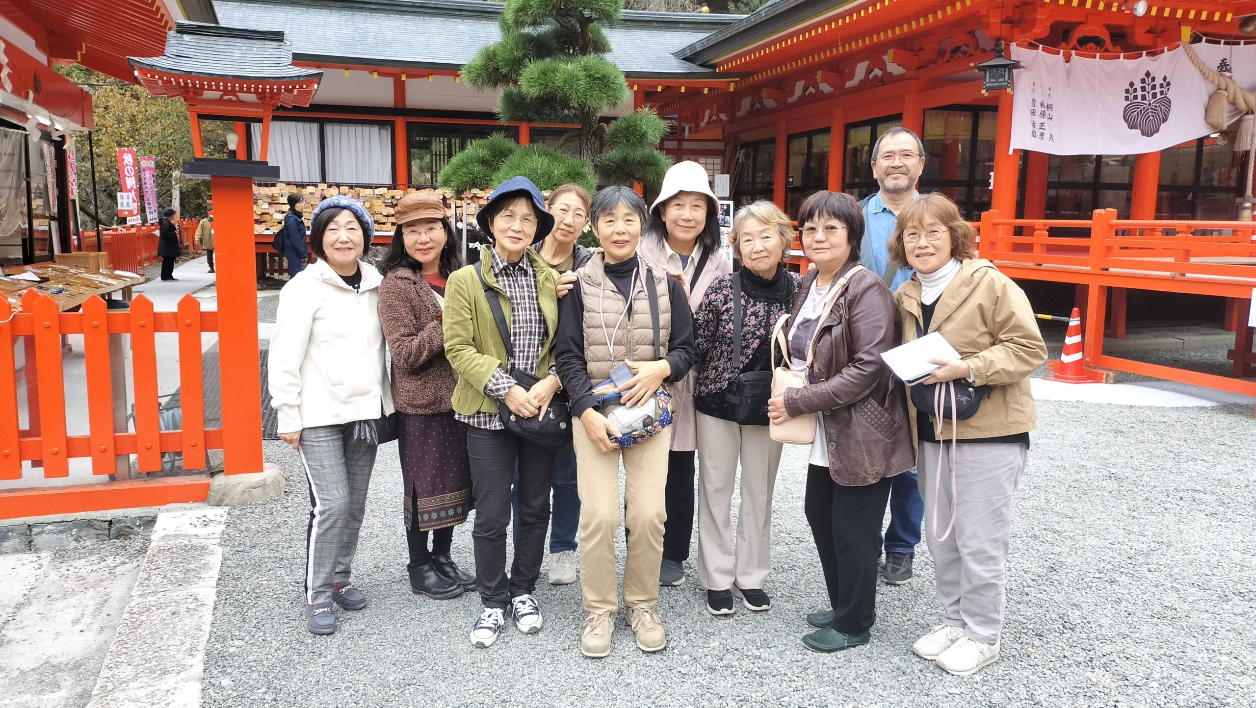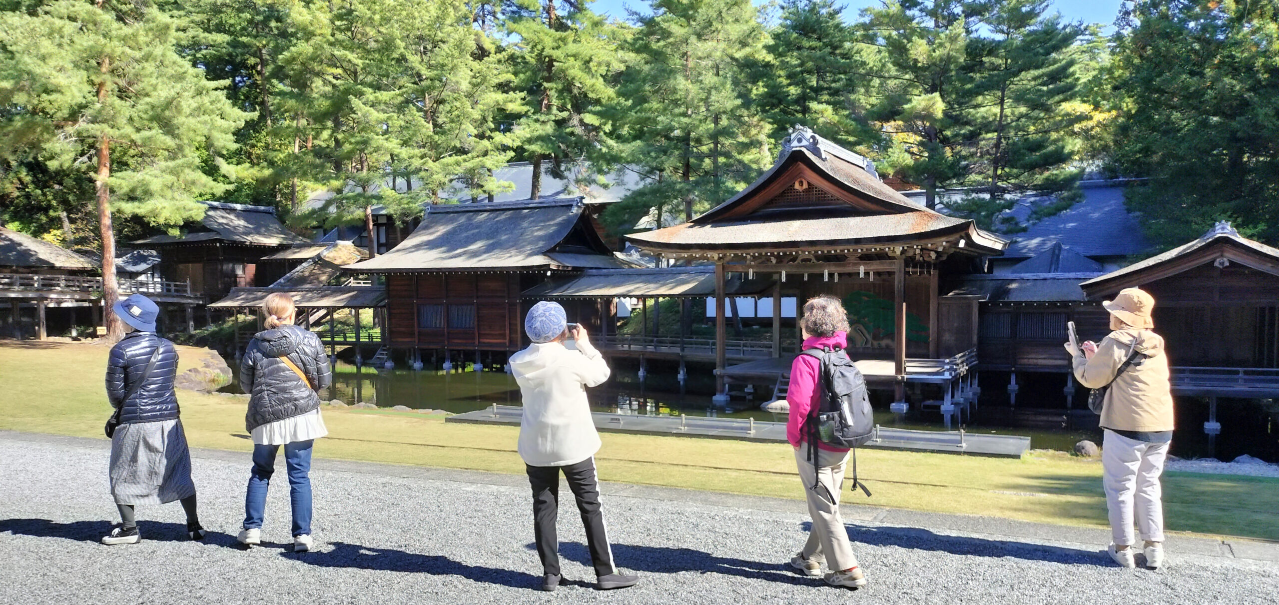 神社の敷地内には、歴史ある能楽堂もあり、季節ごとにさまざまなイベントや奉納の舞が行われているそうです。参拝を終えたあと、再び次の目的地へと向かいました。