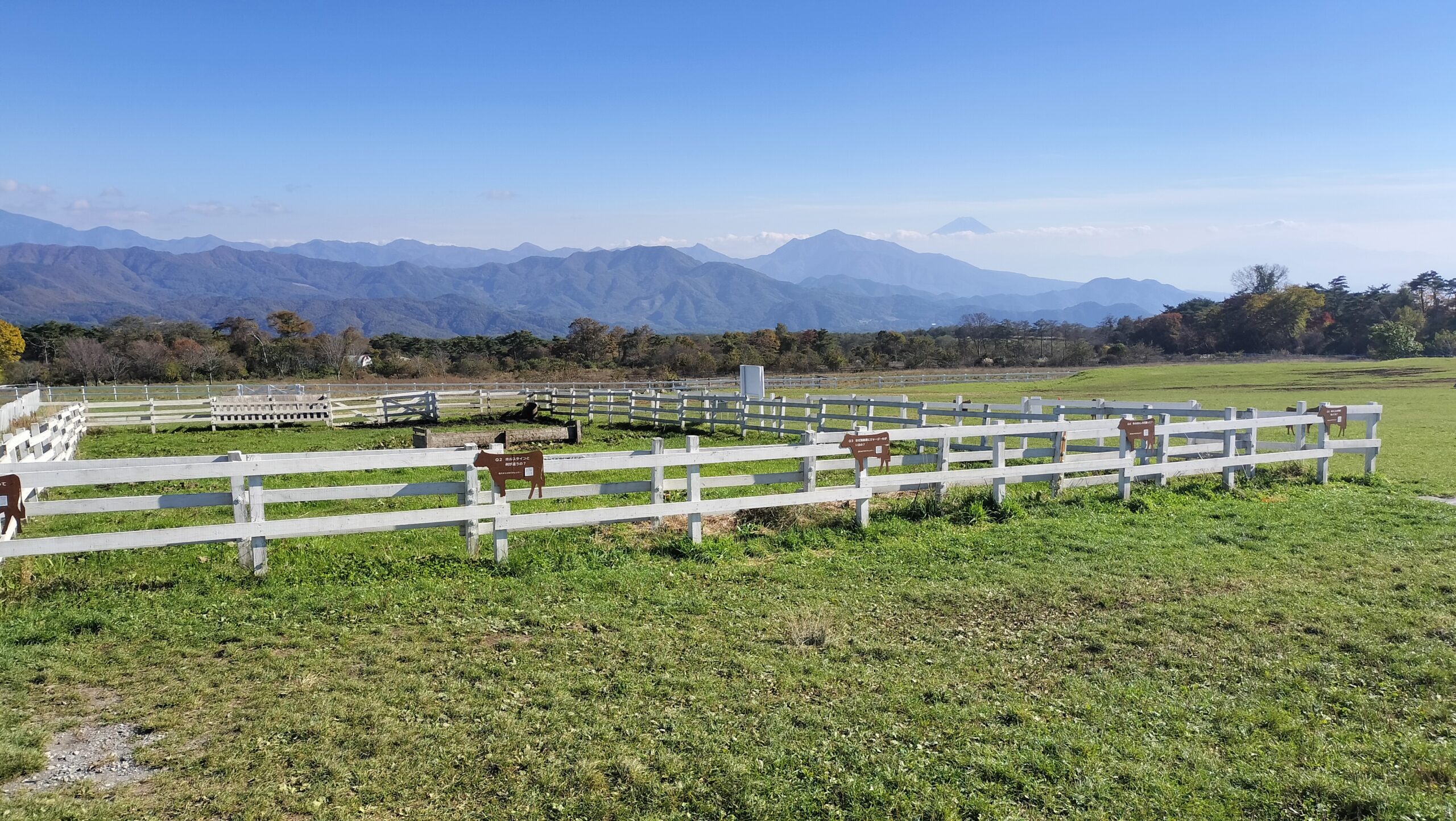 次に訪れたのは、八ヶ岳南麓の自然豊かな丘陵地にある「山梨県立まきば公園」。ここは県立八ヶ岳牧場の一部を一般開放した公園で、雄大な自然と広大な緑の牧草地が広がる、まさに“八ヶ岳の原風景”ともいえる場所です。