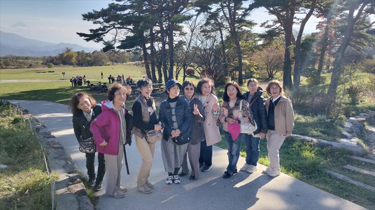その分、のんびりとした空気に包まれ、遠くに広がる山並みと青空をゆったりと眺めることができました。せっかくなので、全員で絶景をバックに記念撮影!風に揺れる草原と八ヶ岳の雄大な姿を背景に、笑顔いっぱいの一枚が撮れました。