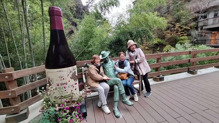 いよいよ今回の旅の最後を飾る観光地、「昇仙峡」へ。到着したのは12時を少し過ぎたころでした。昇仙峡は、長い年月をかけて自然がつくり出した独特の奇岩や奇石が連なる名勝地。青く透き通る渓流の音を聞きながら、岩肌に刻まれた自然の造形美を眺めていると、まるで時が止まったような感覚になります。