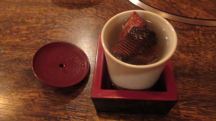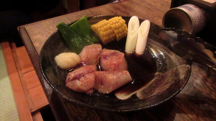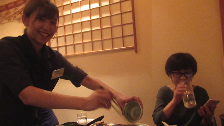 少し遅れて入店、奥の掘りごたつ式のお座敷に案内されました。すでに1組のお客様が食事中です。