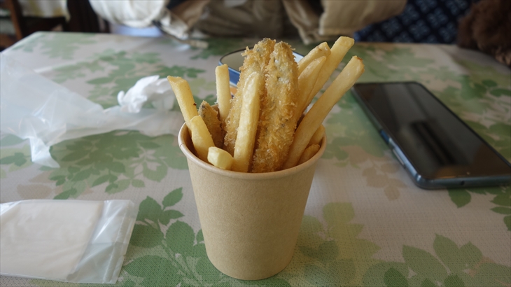 12時18分発のバスまで約20分あるので湖尻の唯一の茶屋に入り暖を取りました。なにも注文しない訳にいかないので「ワカサギポテト」で一休み。なかなかいい選択でした。