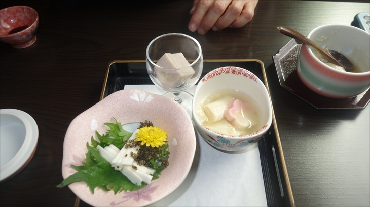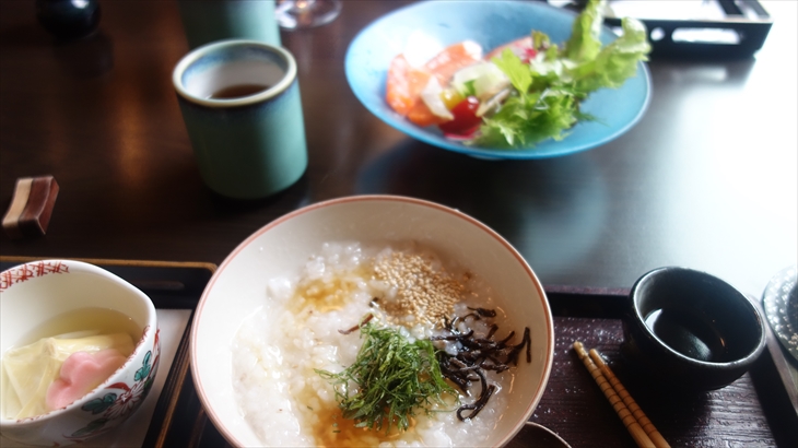 律子さんは女性に人気の「花膳コース(2680円)」、私は「蕎麦粥膳(1800円)」を注文しました。