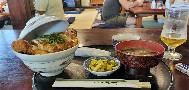 今回初めての外食は「大地」のカツ丼
