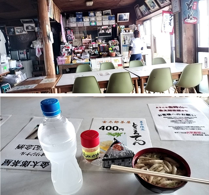 9時少し前に金時神社の登山者用無料駐車場(8台)に到着、ここから登り始めます。仙石原ルートに比べ少し距離がありますが、登りはだらか・、尾根があるので歩きやすいと思います。10時7分頂上に到着、霧がかかり寒いので金太郎茶屋の中で休憩させてもらうことにしました。