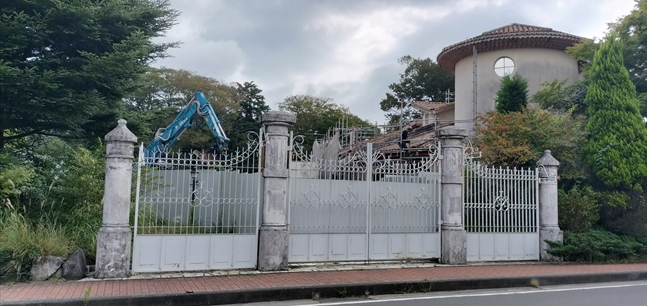 温泉に入り8時30分ころすすき高原一周の朝散歩をしました。3月末で閉演した星の王子様ミュージアムの解体工事が行われていました。9月から12月末までに解体されるそうです。