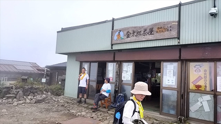 9時少し前に金時神社の登山者用無料駐車場(8台)に到着、ここから登り始めます。仙石原ルートに比べ少し距離がありますが、登りはだらか・、尾根があるので歩きやすいと思います。10時7分頂上に到着、霧がかかり寒いので金太郎茶屋の中で休憩させてもらうことにしました。